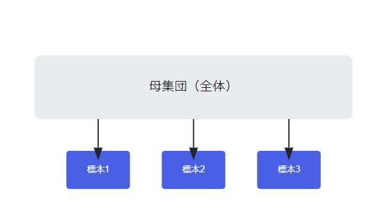私たちが調べられるのは、いつも標本(サンプル)の一部だけです。例えば: