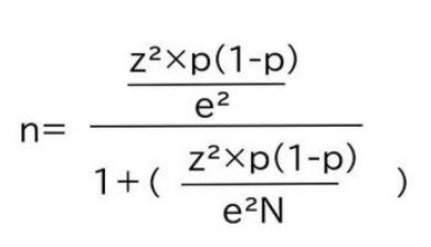 許容誤差0.05 信頼レベル0.95 回答比率0.5とすると1万人以上の場合に必要なサンプル数は380人程度.