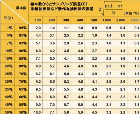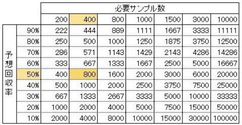 どうしても分からない時は回答比率0.5 がマジックナンバーとなる.理由は.誤差が最大になり必要なサンプル数も最大になるから.