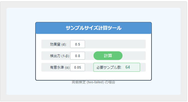 5.サンプルサイズの計算 設定した要素に基づいて計算