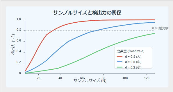 サンプルサイズには適正量がある。少なすぎるとデータの誤差が多くなり統計学的な有意が得にくい。