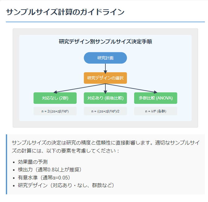 サンプルサイズは 検定力(効果量)を用いる方法と区間推定を用いる方法の2種類がある。