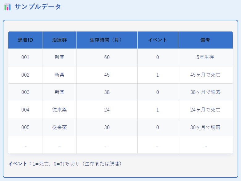 生命表(life table)は、生存データを、事象の数と各事象の時点で生存している割合の観点から要約したものである。